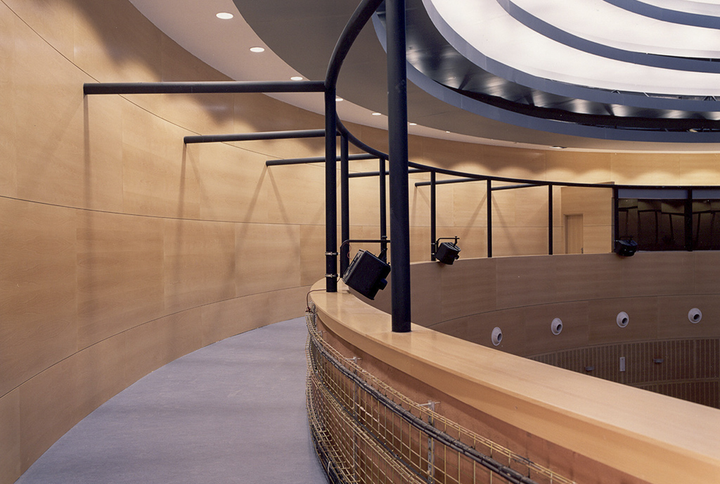 Para la Universidad Rey Juan Carlos, en Madrid, Teisa, además de participar en mobiliario y mostradores, ha realizado trabajos con empanelados y falsos techos en diversas áreas, como por ejemplo en el auditorio.