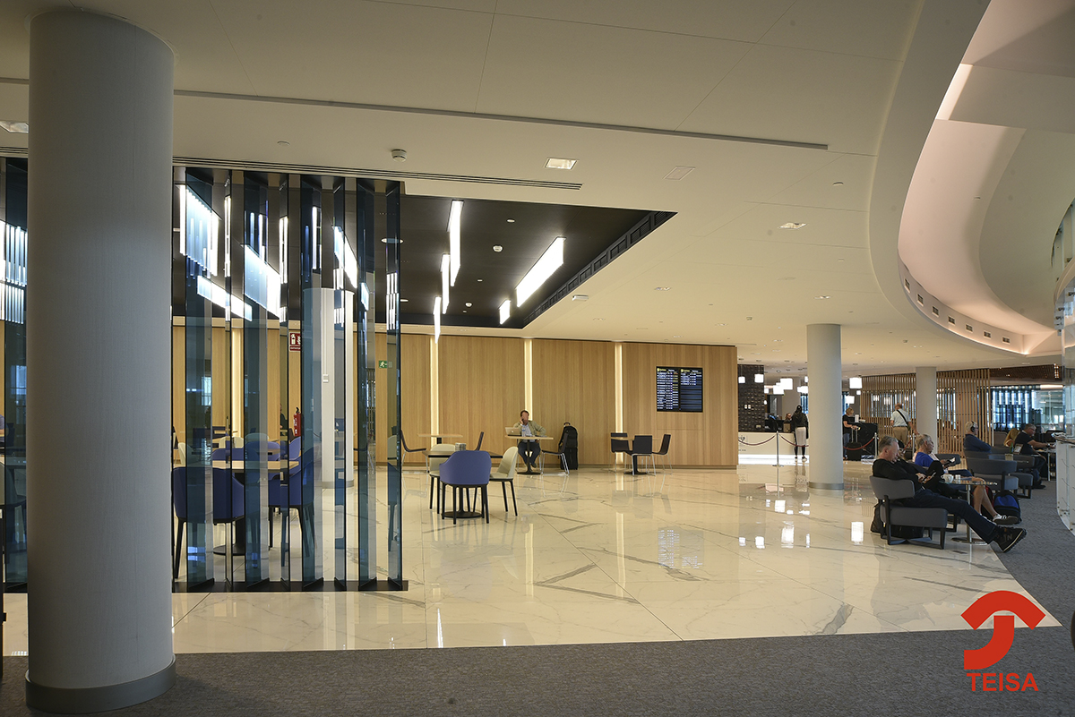 Uno de los trabajos realizados por nuestra empresa Teisa Ebanistería Industrial en el Aeropuerto Josep Tarradellas Barcelona-El Prat fueron las reformas para la sala VIP Lounge Miró.